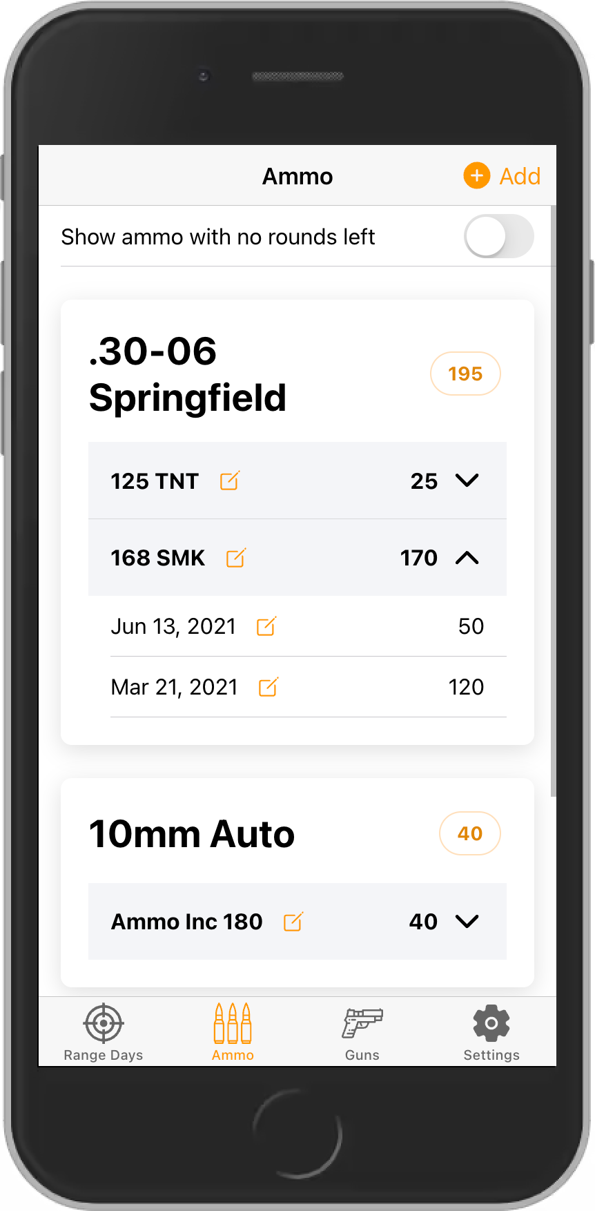 Effortlessly log the number of rounds per gun. Watch as Range Log diligently tallies up your total round count per gun, automatically tracking the barrel round count for you.